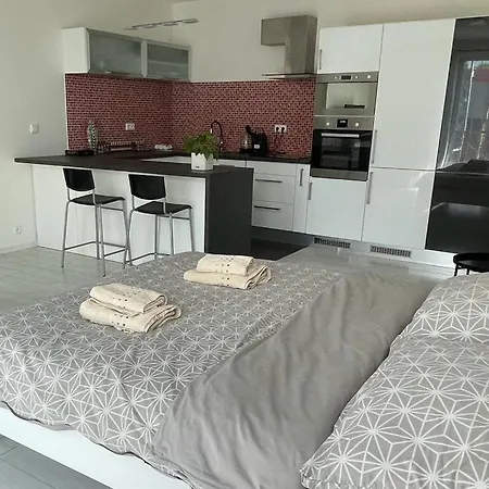 La pequeña cocina, completamente equipada para preparar comidas, incluye una cafetera/tetera y una nevera. El Rumako Apartments está situado a 20 km del aeropuerto Praga Vaclav Havel. Los huéspedes se deleitarán con las vistas a la calle desde una terraza disponible en esta propiedad.